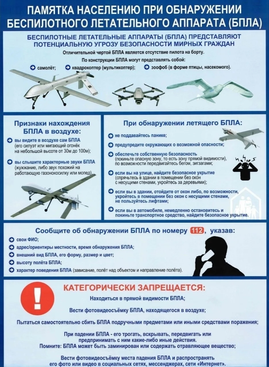 Памятка населению при обнаружении беспилотного летательного аппарата (БПЛА)