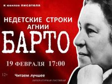 19 февраля 2026 года в 17:00 в центральной городской библиотеке им. Д. М. Балашова (ул. Т. Фрунзе-Оловянка, д. 7) состоится лекция литературной гостиной «Читаем лучшее». Тема встречи: «Недетские строки Агнии Барто».