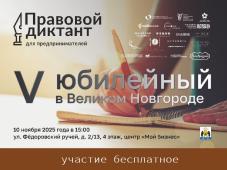 10 ноября 2025 года в Великом Новгороде и еще в 20 городах России пройдет Правовой диктант для предпринимателей.