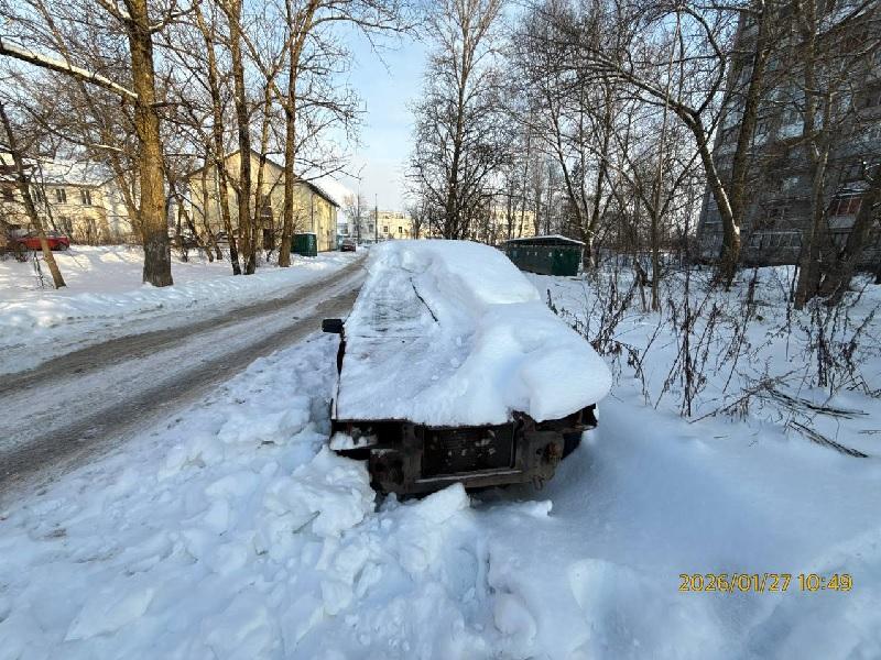 Специалисты контрольно-административного управления (КАУ) Администрации Великого Новгорода 27 января 2026 года обследовали брошенное, неисправное (разукомплектованное) транспортное средство марки ВАЗ 21099 красного цвета без государственного регистрационного знака по адресу: г. Великий Новгород, просп. Александра Корсунова, с торца дома № 7.